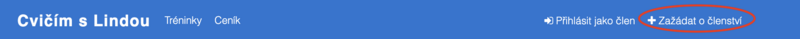 1) Potřebuješ mít členství. O to si jednoduše zažádáš v rezervačním webu kliknutím na tlačítko zažádat o členství v pravém horním rohu: