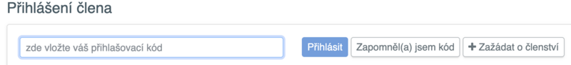 2) Po schválení členství (trvá několik vteřin), se přihlásíš jako člen vložením přihlašovacího kódu: