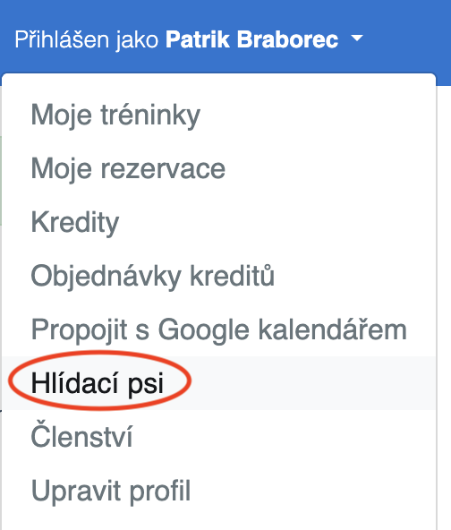 3) V pravém horním rohu rozbal menu a klikni na Hlídací psi: