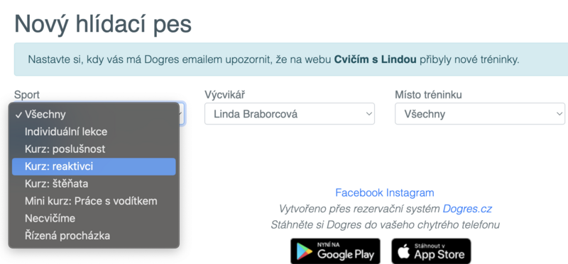 Můžeš si nastavit hlídacího psa a jakmile trénink vypíšu, přijde ti do emailu zpráva. Žádný trénink ti neuteče.